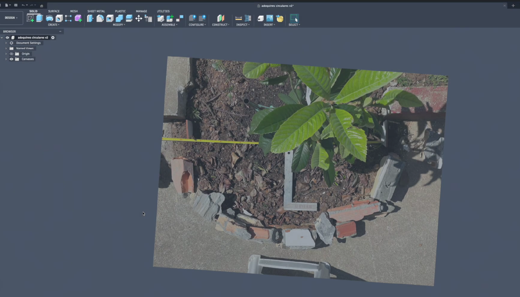 El proceso comienza en el ordenador. Para que los adoquines encajen como un puzle en el terreno, lo más eficaz es utilizar programas de diseño como Fusion 360. Un truco muy útil es realizar una fotografía de la zona que queremos pavimentar y escalarla dentro del software. De esta forma, podemos dibujar el contorno exacto y diseñar los moldes basándonos en la realidad del jardín.