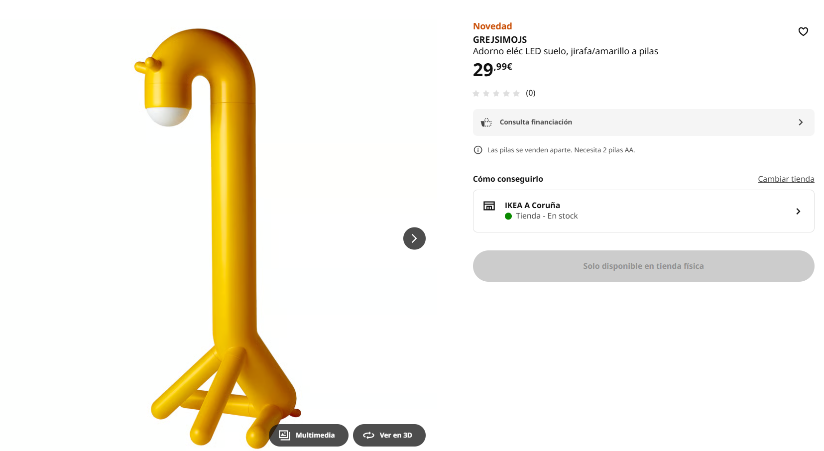 - Lámpara de pie Jirafa LED: olvídate de los cables. Esta lámpara de pie, con su divertido diseño que evoca una jirafa, es inalámbrica y funciona con batería. Su vibrante color amarillo aporta una energía inconfundible, perfecta para iluminar un rincón de lectura, junto al sofá o en una habitación infantil.