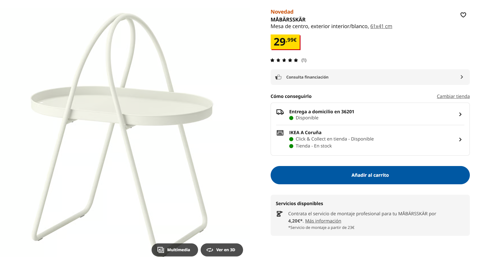 - Mesa de centro MÅBÄRSSKÄR (29,99 €): esta mesa promete ser la estrella de la temporada. Su diseño ligero y su acabado en blanco puro la hacen ideal para aportar esa sensación primaveral y limpia. Lo mejor es su polivalencia: perfecta tanto en interiores como en exteriores, y con un tamaño ideal para balcones pequeños o como auxiliar junto al sofá. Un diseño "inquietante" que, lejos de ser voluminoso, aporta ligereza visual.