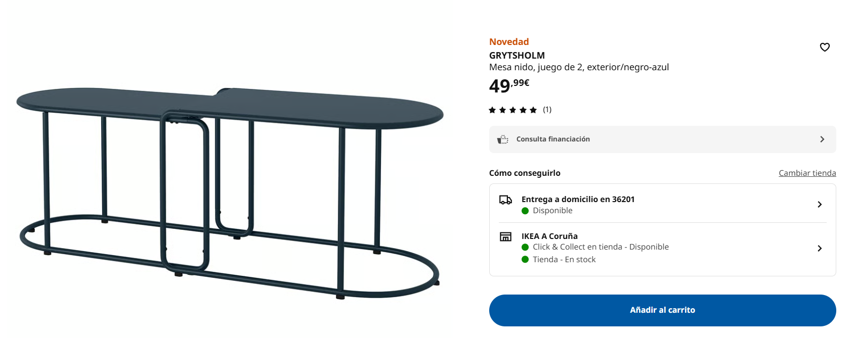 - Mesas nido GRYTSHOLM (49,95 €): un conjunto de dos mesas que, según el fabricante, "están invictas desde hace primavera". Su forma singular y el sofisticado color azul-negro las convierten en un elemento moderno y fresco. Son ligeras, se pueden separar para visitas y guardar fácilmente, manteniendo siempre una estética impecable.