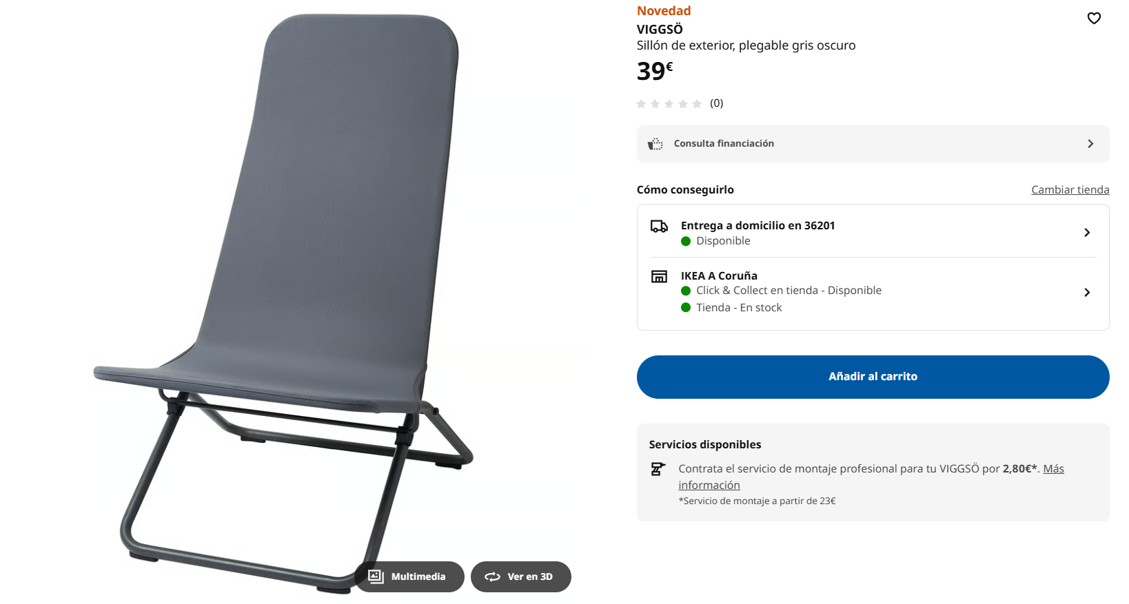 - Sillón VIGGSÖ: si buscas un rincón para relajarte, esta es tu silla. Plegable y apta para balcones pequeños, ofrece la comodidad necesaria para largas mañanas de café sin perder la elegancia, evitando la apariencia de mobiliario de camping. Ideal para esas lecturas al aire libre.