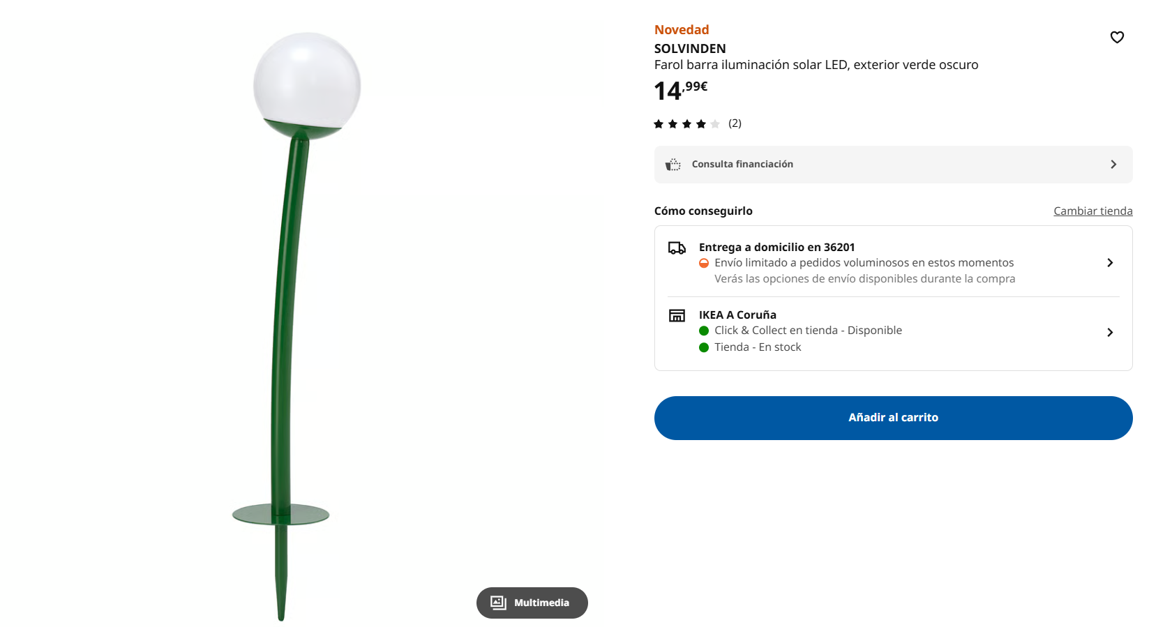 - Poste solar LED para tierra: aunque aún no disponible en todos los mercados, esta luz de globo para el suelo, alimentada por energía solar, promete ser un éxito para crear puntos de luz acogedores en jardines y caminos.
