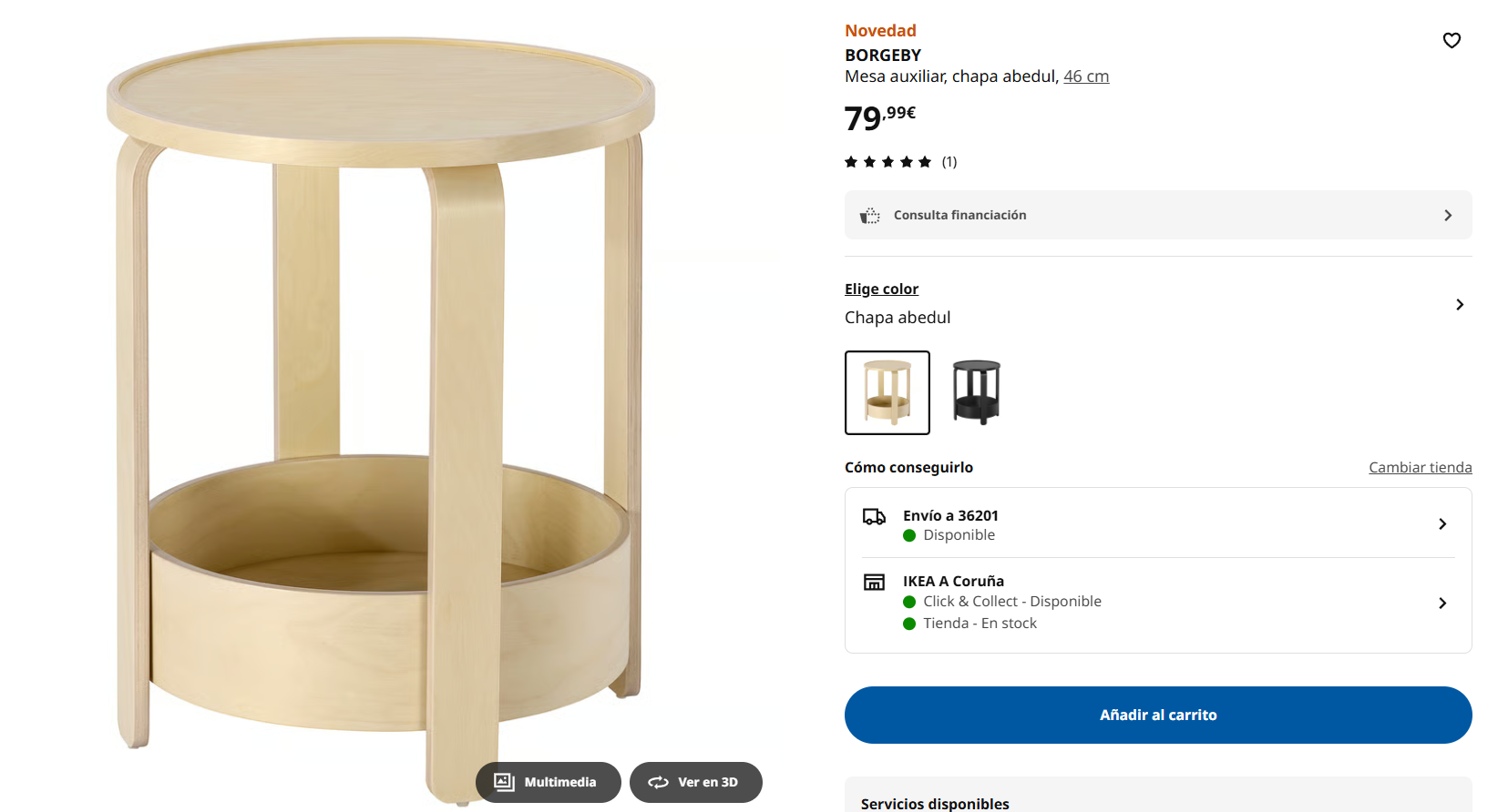 - Mesita auxiliar Borgabi: Desprende pura energía escandinava. Sencilla, elegante y súper versátil, está disponible en madera natural y en negro, a juego con su mesa de centro compañera.
