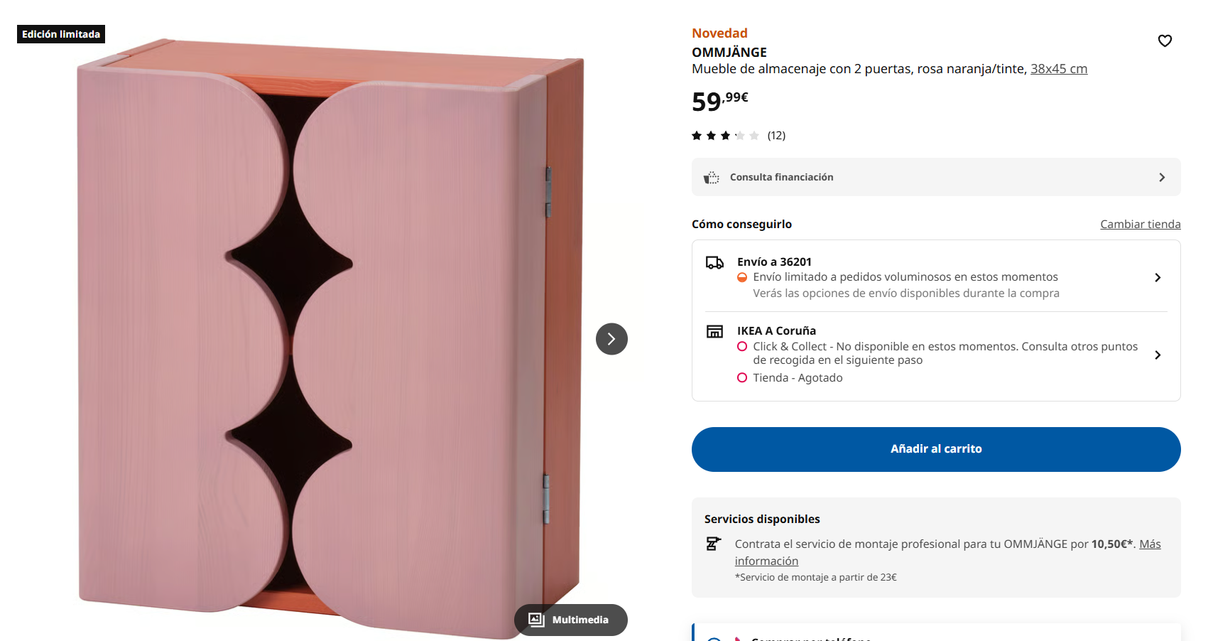 - Armario Ommjänge con puertas festoneadas: Un flechazo a primera vista. Sus colores vibrantes (rosa y naranja) y su diseño le dan un aire de pieza de diseñador. Es juguetón, artístico y sin duda, un elemento que invita a sonreír.