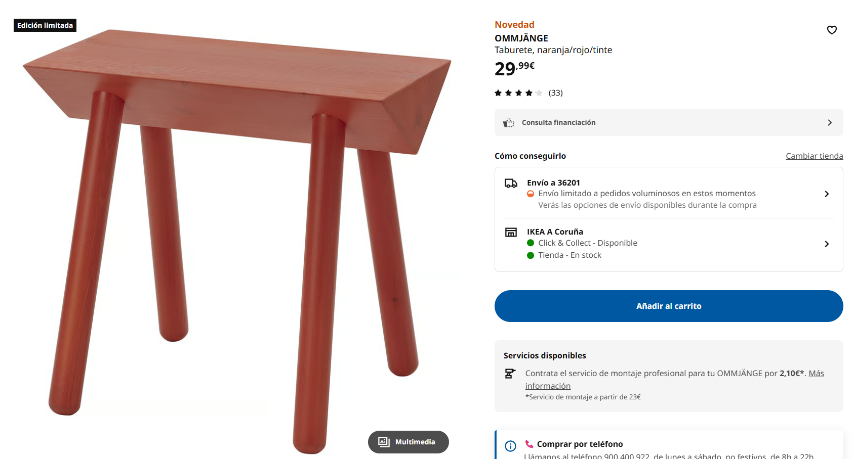 - Taburete rojo Ommjänge: Una pequeña joya. Sus líneas curvas y esculturales gritan personalidad, y ese estallido de rojo es imposible de ignorar. Perfecto para añadir un toque de drama alegre a tu espacio.