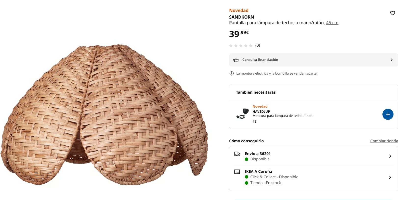 - Pantalla de ratán tejida a mano: Preciosa, con pétalos que evocan un aire vintage pero que, a la vez, se siente actual y de diseño. Un 10/10 en estilo y un ejemplo de cómo la belleza puede venir en un paquete plano.