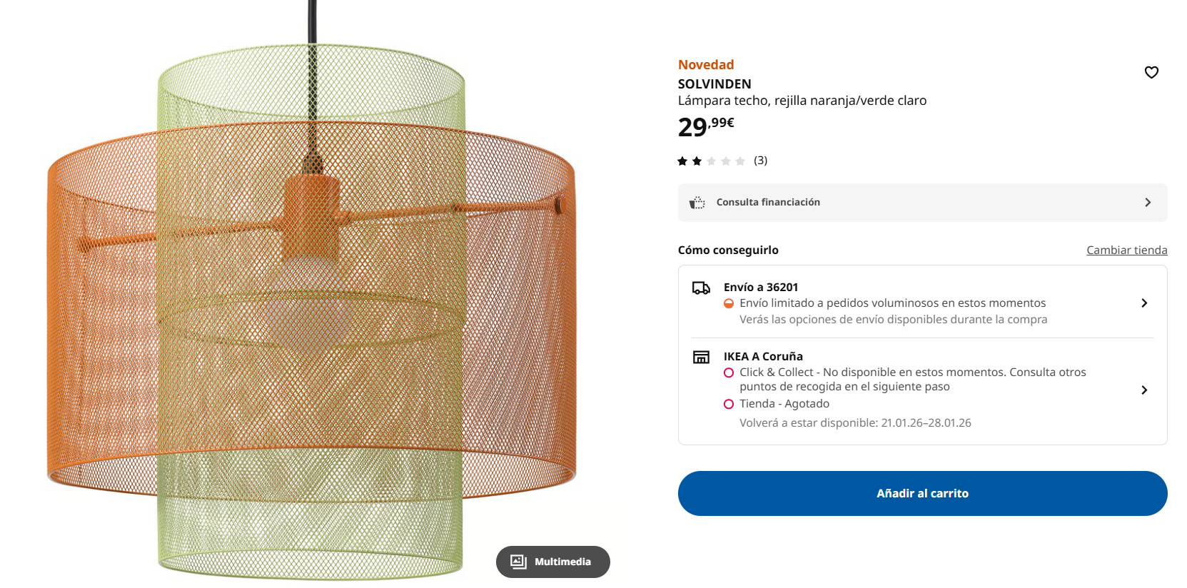 También encontramos una lámpara colgante de malla en tonos naranja y verde, que rompe con la monotonía de las lámparas de techo tradicionales. Su pantalla de malla difunde la luz de manera hermosa, y sus colores audaces le dan un aire desenfadado y único, perfecto para cocinas, recibidores o esos rincones acogedores que necesitan un extra de vida.