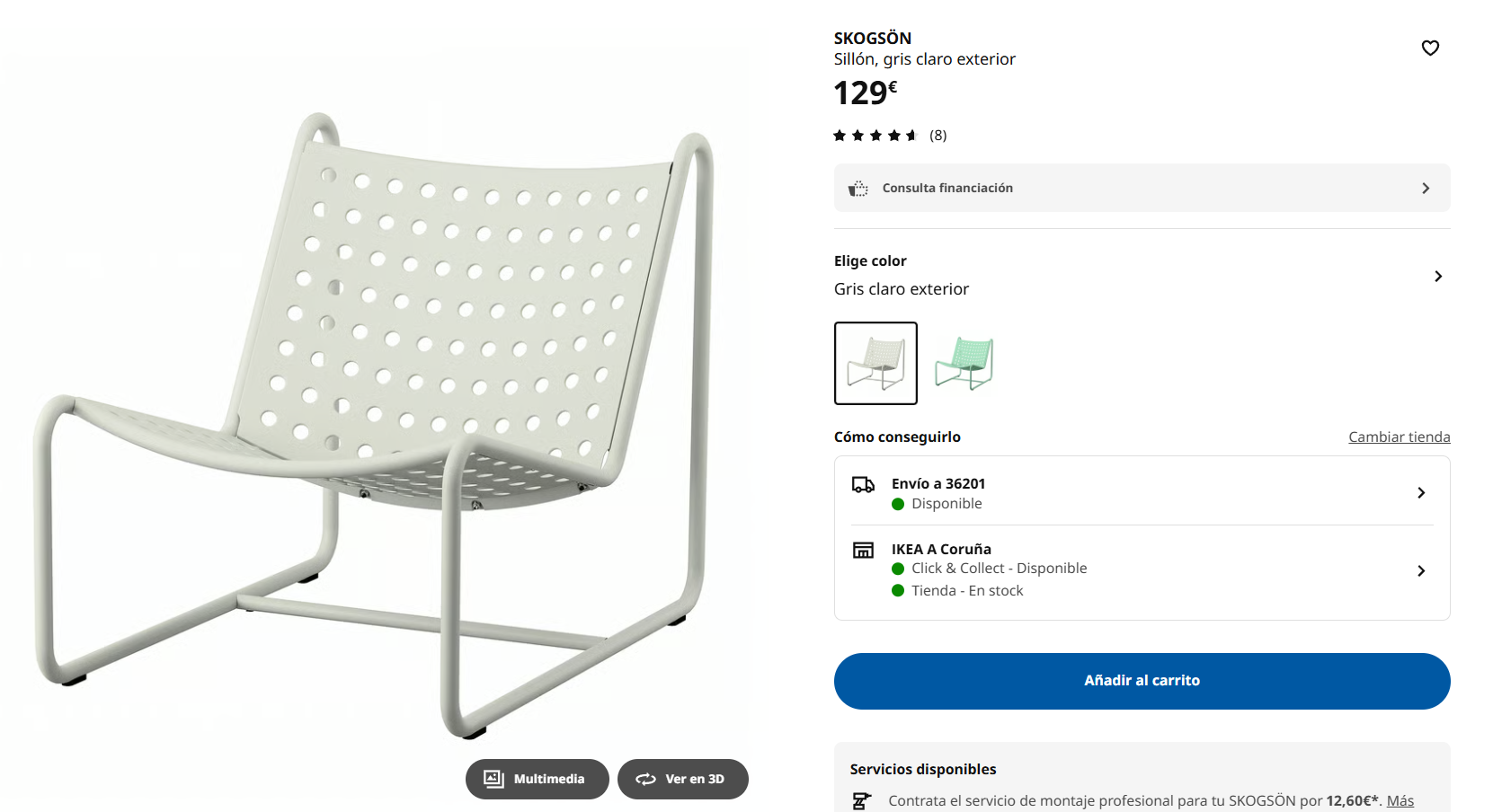 - Silla de exterior: con una silueta escandinava limpia y disponible en gris claro o verde, esta silla es perfecta para balcones, patios o jardines. Su estética moderna y fresca la convierte en una pieza de diseño, no solo en un mueble de exterior funcional.