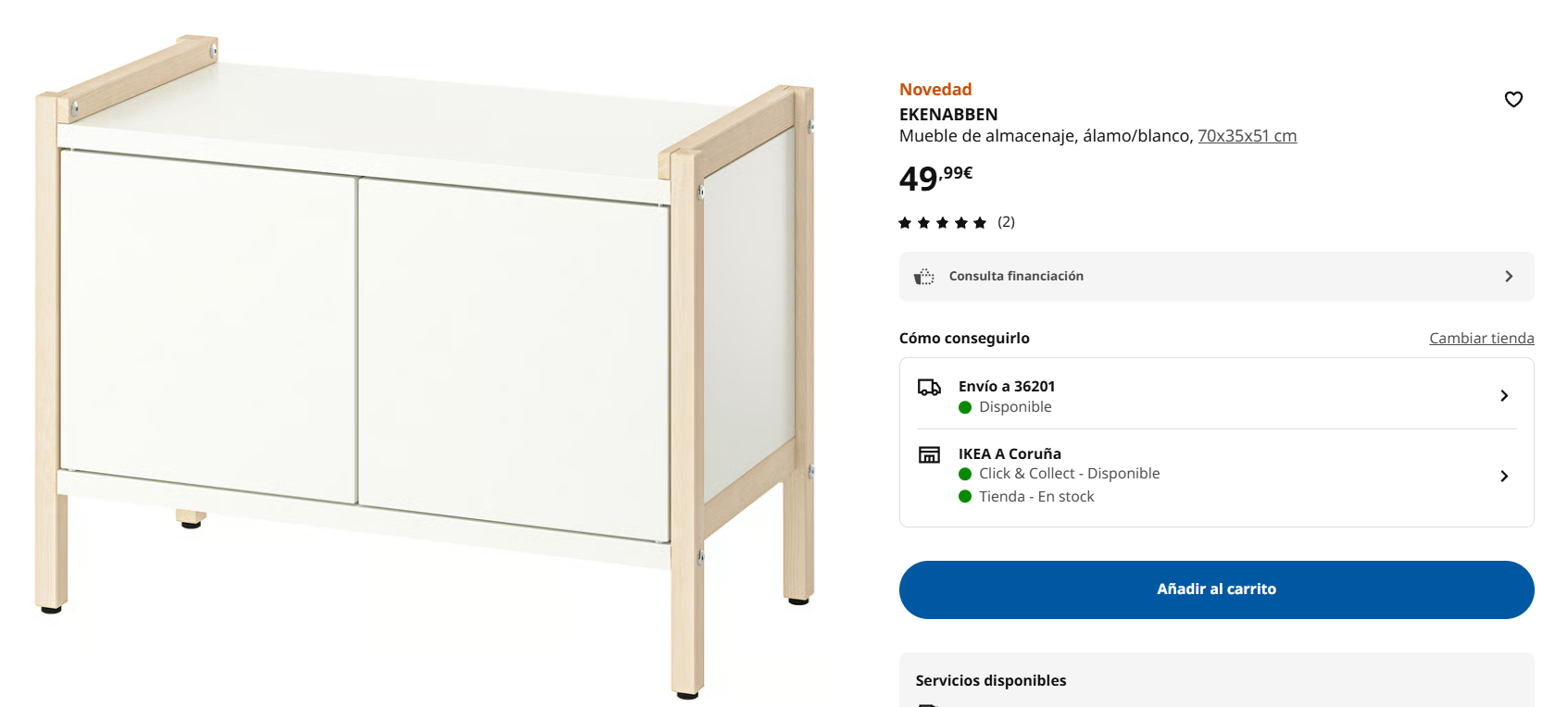 - Armario Akenabben: una pieza de almacenamiento inteligente y versátil. Limpio, sencillo y con el tamaño perfecto para salones, recibidores o incluso como almacenaje extra en la cocina. La combinación de blanco y madera facilita su integración, y sus puertas mantienen el desorden oculto para un look pulcro y minimalista.