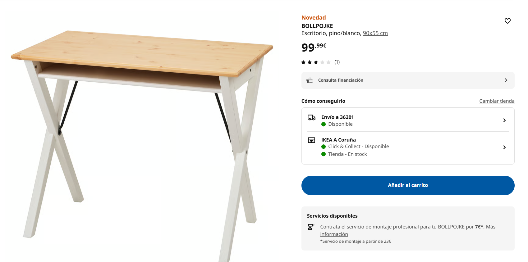 - Escritorio de pino bicolor: disponible en blanco, este escritorio logra un equilibrio perfecto entre diseño moderno y funcionalidad diaria. Es lo suficientemente espacioso para un portátil y otros elementos esenciales de trabajo, pero a la vez elegante y compacto para adaptarse a cualquier lugar. Un escritorio sólido, simple y atemporal.