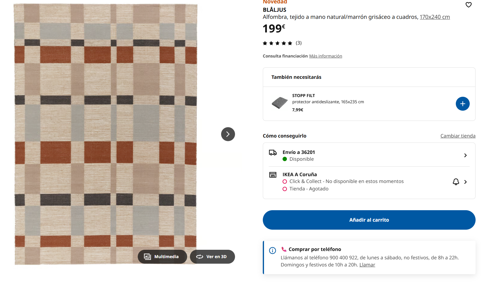 - Alfombra a cuadros: Tejida a mano por artesanos, esta alfombra presenta un diseño a cuadros con tonos suaves que aporta calidez y carácter a cualquier espacio.