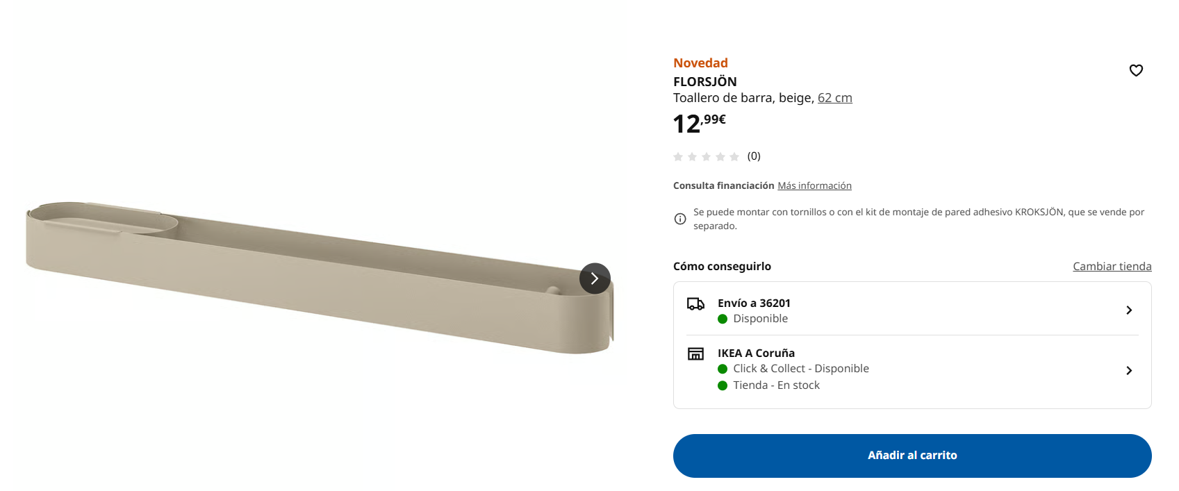 - Toallero de barra: Con un diseño minimalista y funcional, este toallero incluye una pequeña estantería para dejar objetos como el reloj o las joyas mientras te duchas.
