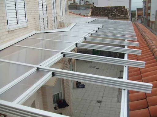 - El coste: es una opción más cara que el policarbonato o el panel sándwich, no solo por el material en sí, sino también por los toldos complementarios y la robusta estructura (aluminio reforzado o hierro) necesaria para soportar su considerable peso.