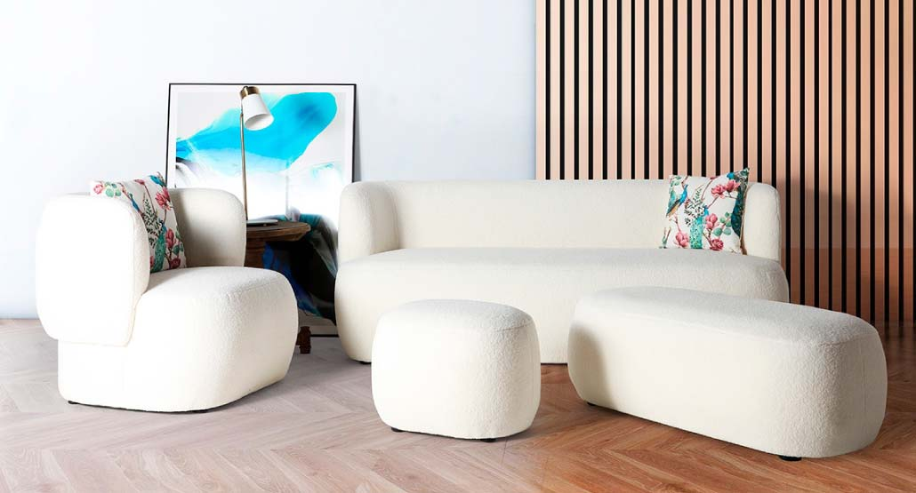 El tejido bouclé está de moda, y entendemos por qué: es texturizado, acogedor y parece caro en las fotos. Pero vivir con él es como tener una mascota que suelta pelo constantemente pero nunca te da cariño. Esa superficie con bucles es un imán para migas, pelo de mascotas, polvo y cualquier cosa que flote por tu casa. Si te gusta el aspecto, prueba telas de alto rendimiento que imiten la textura, o elige lino o terciopelo.